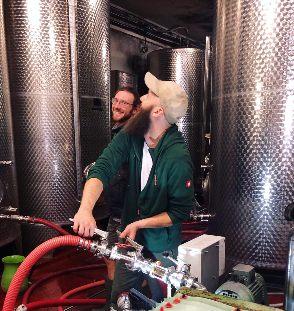 Sebastian is de keldermeester bij Eymann, hij is verantwoordelijk voor de vinificatie en stuurt het kelderteam aan. Sebastian beschikt over enorm veel kennis, die hij graag deelt, maar is bovenal ook een superfijn mens. Lorenz is Stagiair maar ook van Lorenz heb ik enorm veel mogen leren. Als telg uit een familie met wijngaarden is hij opgegroeid met wijnbouw waardoor hij veel kennis heeft over de druif. Maar Lorenz is bovenal een gedreven en kundig student oenologie.